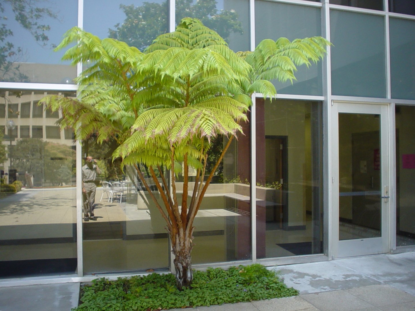 The finely divided fronds rise out of the trunk and arch down as they get older.